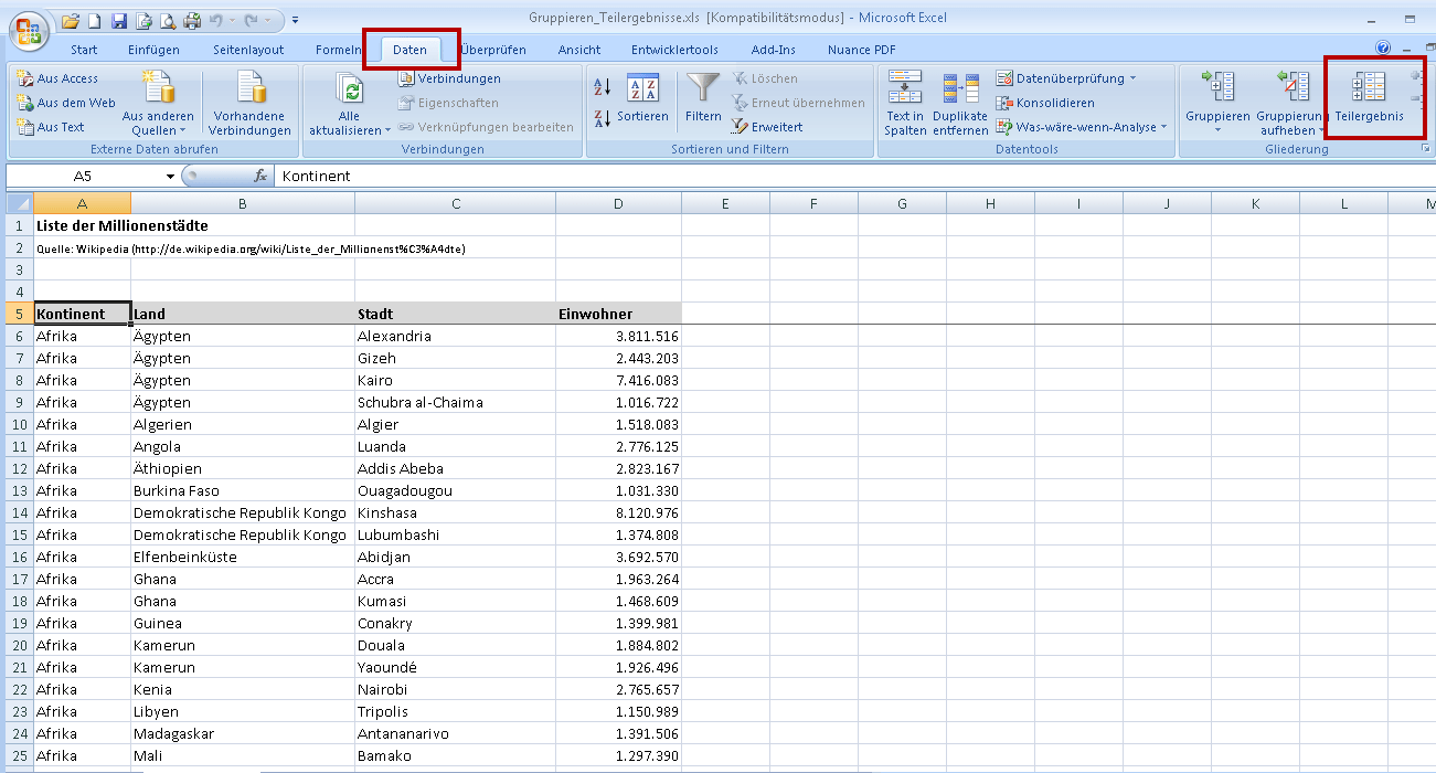Klickt auf den button gliederung > teilergebnis. Excel 2002 hallo zusammen, gibt es eine möglichkeit, einer gruppierung und gliederung von daten einen namen zu geben? In der zweiten stehen stufen, die gruppiert werden sollen.